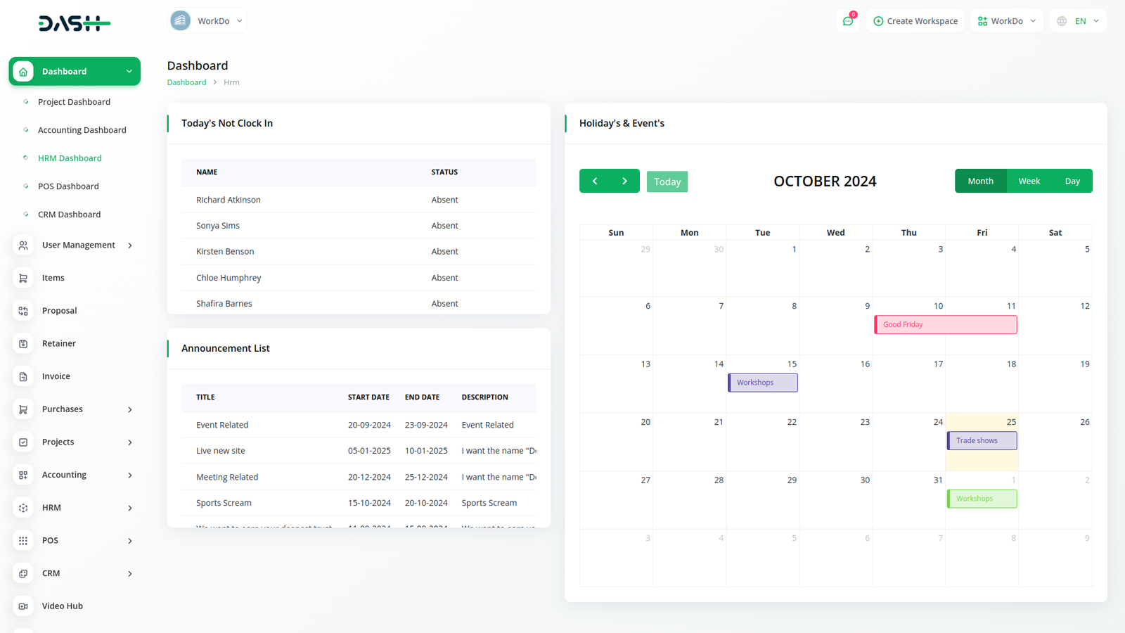 This comprehensive feature facilitates the activities of HR. It is easy to maintain a record of promotions, transfers, work trips, terminations, warnings, and other important aspects of HR.